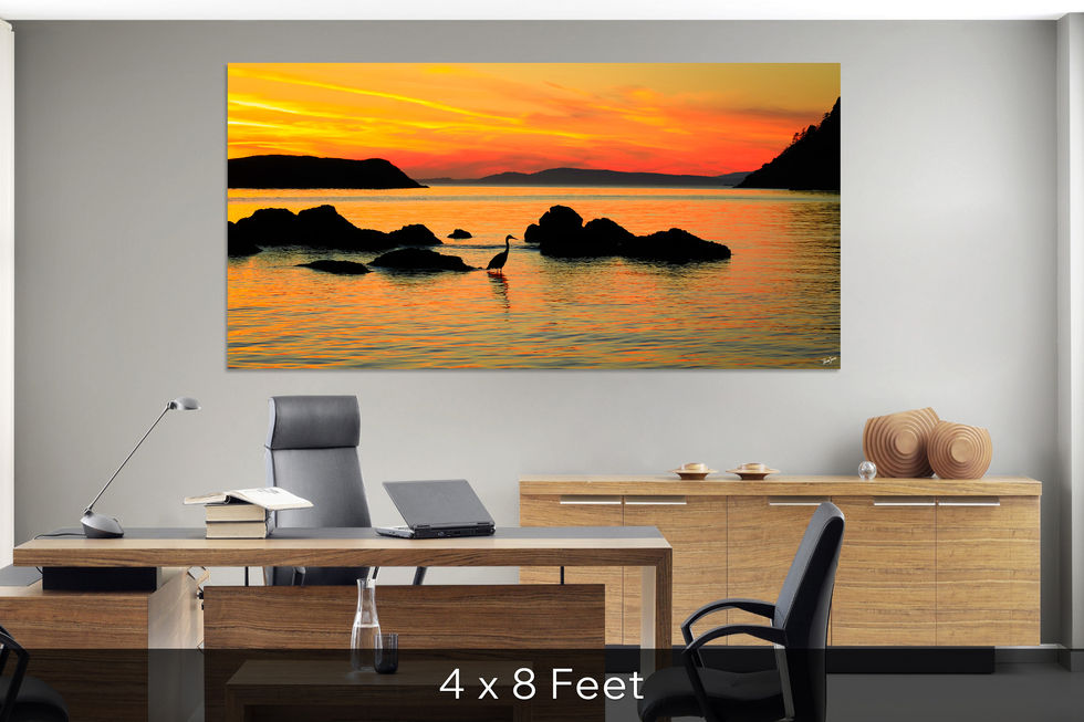 This great blue heron wall art décor is an exceptional choice for anyone who enjoys a waterfront view, or a waterfowl view. As vivid as a real sunset, only one that never ends, Metal Prints of this fine art great blue heron photograph are vibrant and luminous and can be printed in wall art sizes of up to eight feet wide.