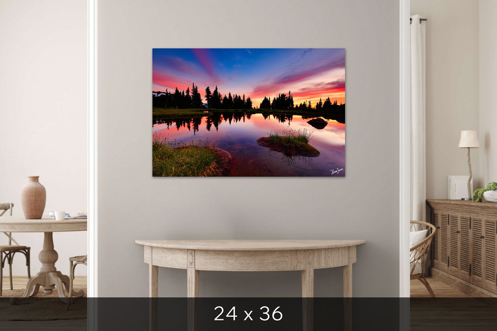 Our gallery pieces are displayed with an ultra high gloss finish because it delivers the greatest depth, contrast, and dimensional realism. The surface captures available light and reflects it back through the image, which enhances clarity and makes the artwork feel lifelike.